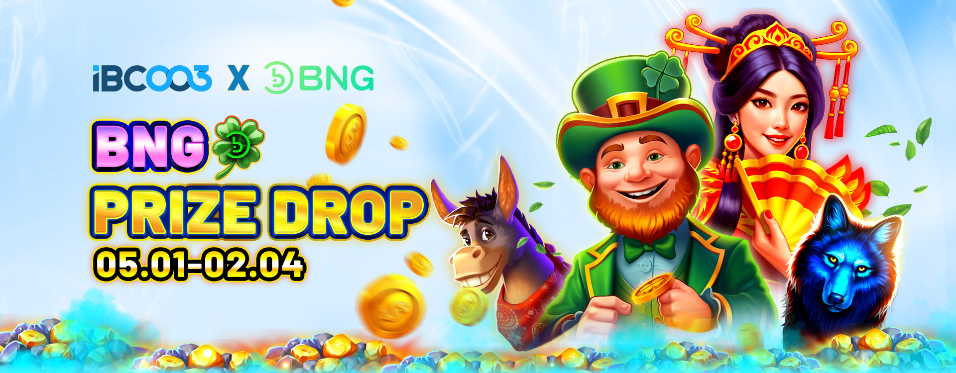 All BNG Games 5th Jan 2026 12:00 PM - 2nd Apr 2026 12:00 PM Participants who place a minimum bet of 1 USD per round on any BNG game during the event period shall be eligible to receive randomly awarded rewards.